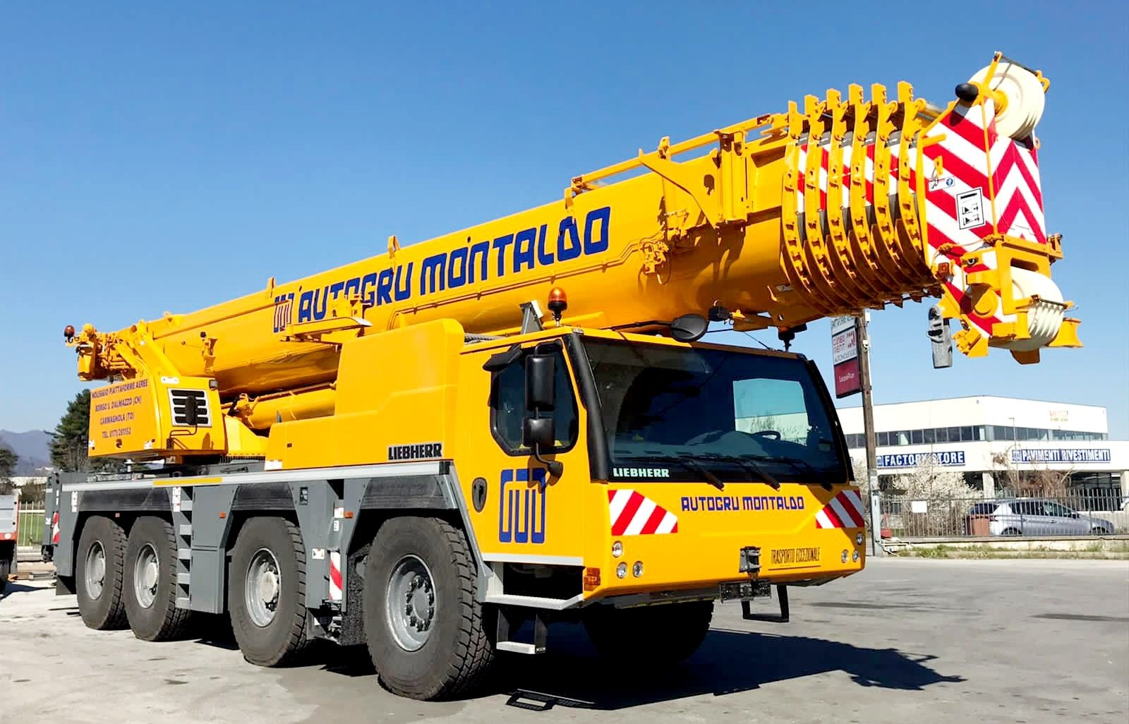 Autogru Montaldo si affida a marchi produttori leader del mercato come Liebherr, Demag e Marchetti che offrono veicoli dotati di bracci estensibili da 30 a 90 metri e che possono movimentare fino a 160 tonnellate.